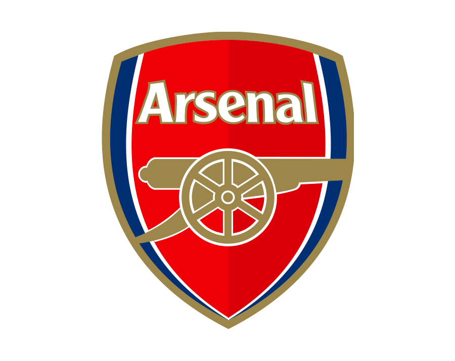 The English football club logo featuring the word "Arsenal" in white on a red shield, overlaid with a bronze cannon pointing right and facing upwards.