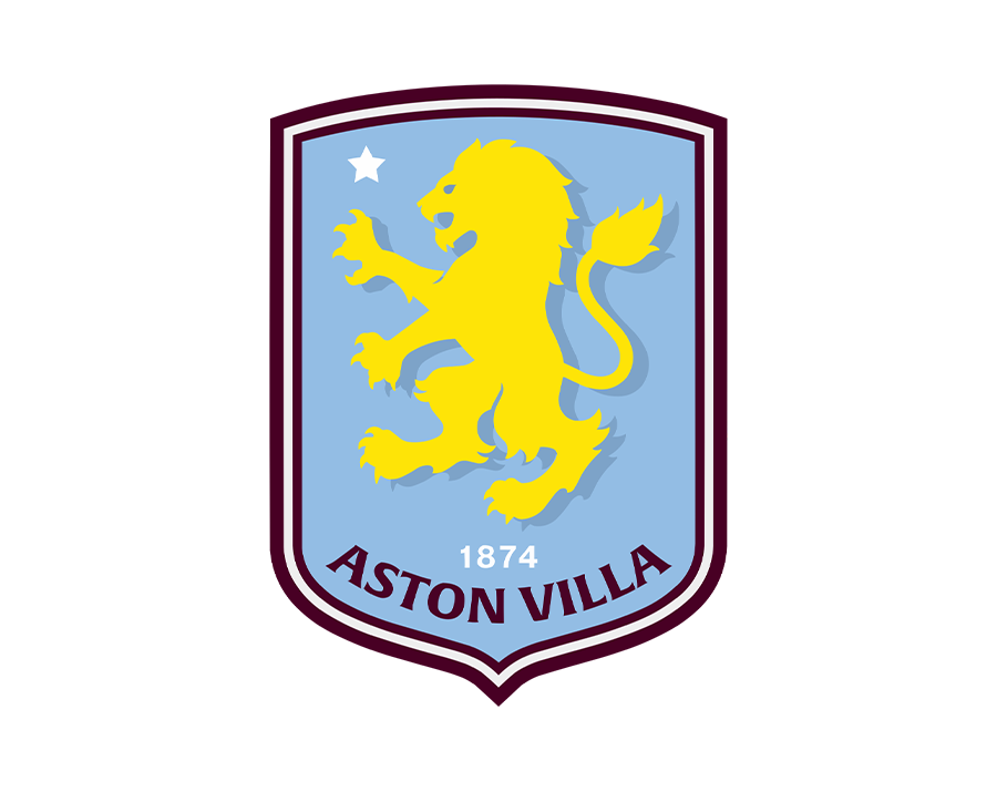 The official Aston Villa FC logo, featuring a rampant yellow lion on a light blue shield, with the words ASTON VILLA and the year 1874 written beneath it.