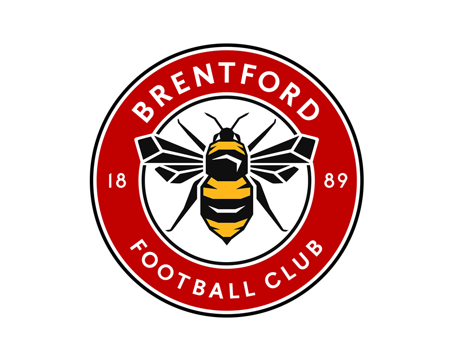 The Brentford FC logo, featuring a stylized yellow and black striped bee with spread wings in a white inner circle, surrounded by a red ring with the club's name.