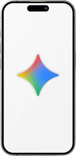 A modern smartphone screen with a black frame displaying the Google Gemini icon: a four-pointed star with a gradient of blue, green, yellow, and red colors.