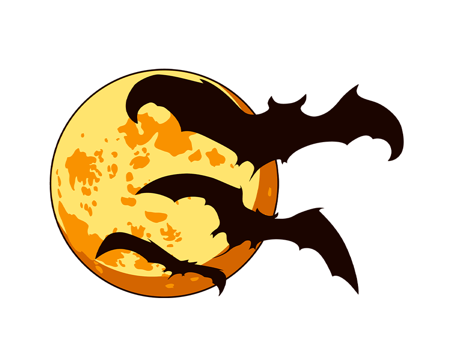 Three bat silhouettes flying in front of a full moon (Halloween themed transparent PNG).