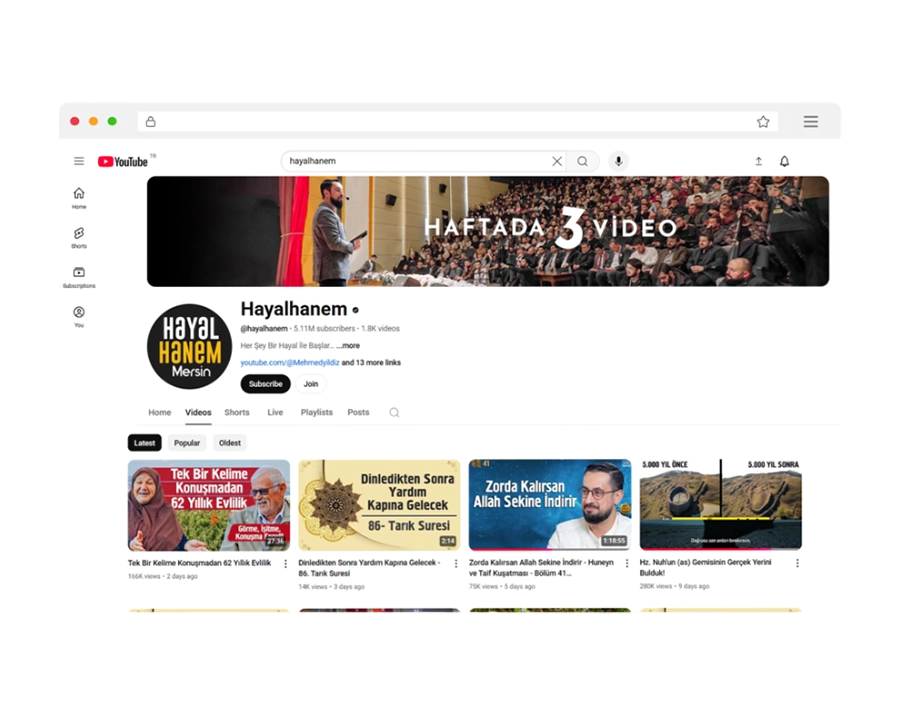 A high-quality, transparent PNG mockup of an iPad Pro with a Magic Keyboard, showing the Hayalhanem YouTube channel's homepage