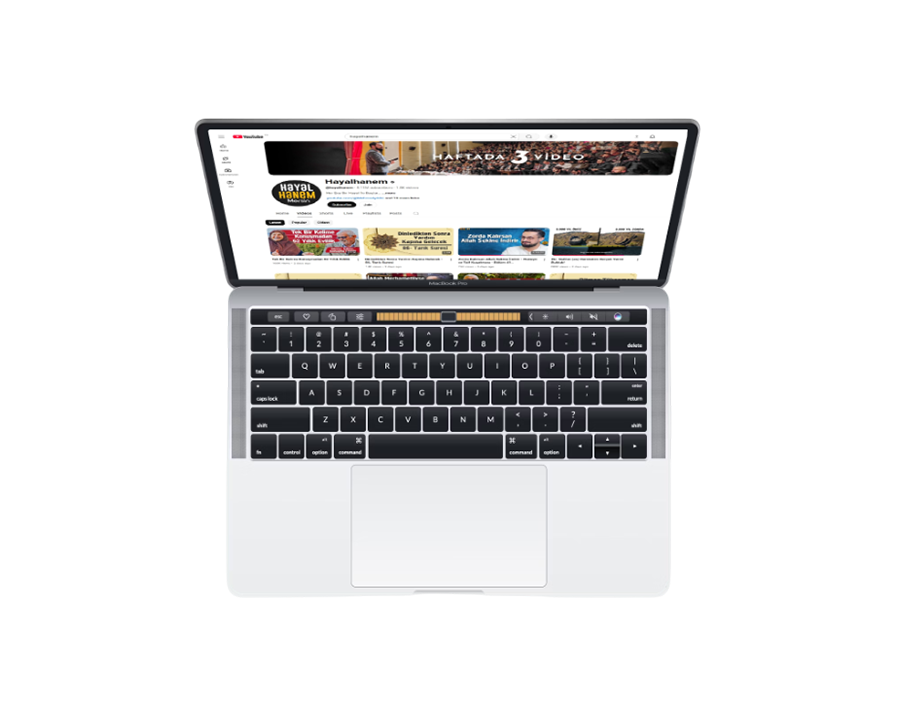 Digital Device Mockup (iPad Pro/Laptop/Browser) displaying the Hayalhanem YouTube Channel homepage with content by Mehmet Yıldız, transparent PNG.