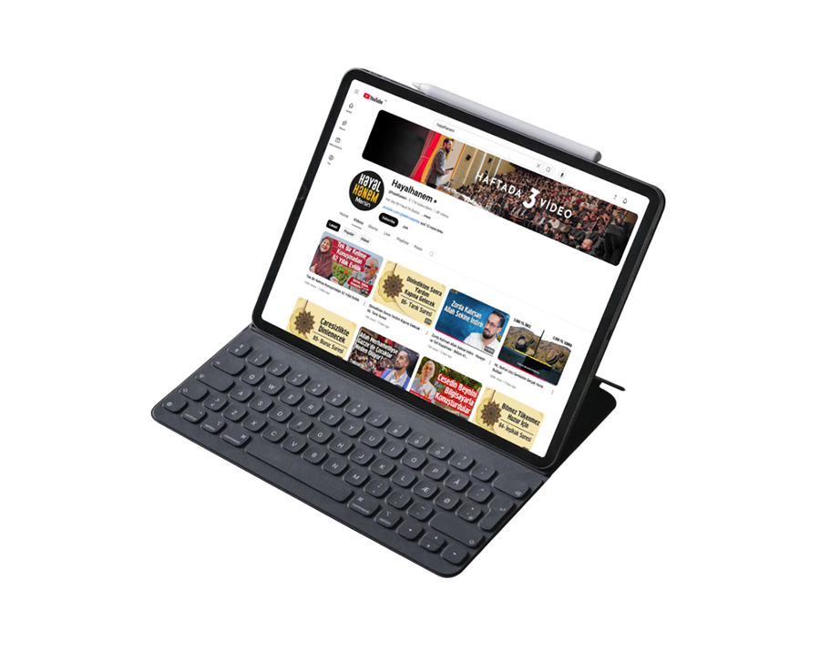 iPad Pro Mockup with Hayalhanem YouTube Channel on Screen, featuring Mehmet Yıldız content, transparent background.