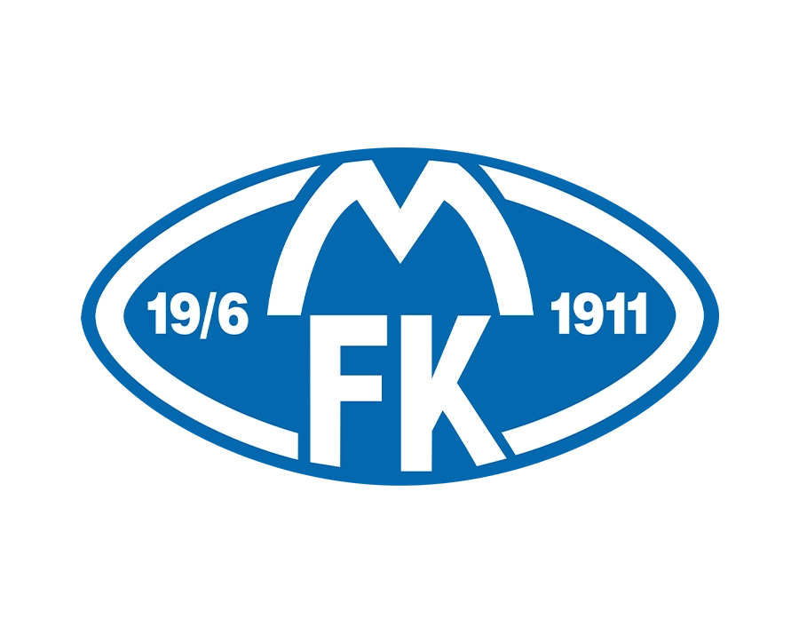 Molde FK (MFK) Football Club Logo, Blue Elliptical Shape, Featuring a White "M" at the Top, "FK" in the Center, and the Establishment Date "19/6 1911" on the Sides.