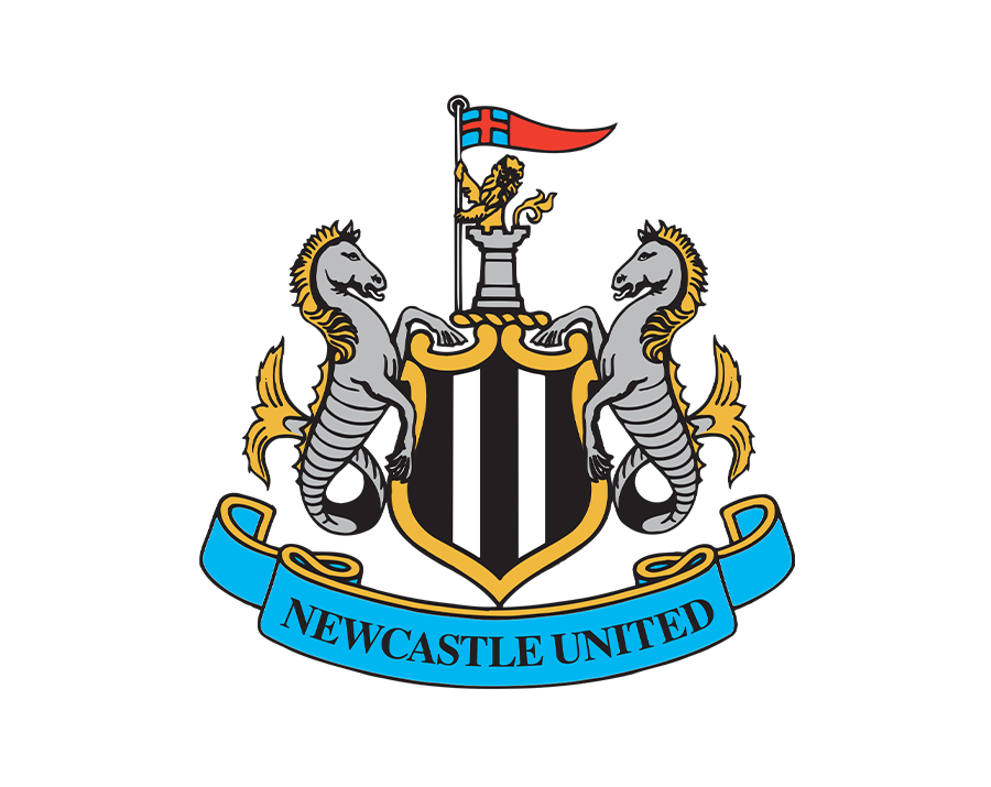 The traditional Newcastle United football club crest, featuring a shield with vertical black and white stripes, flanked by two sea horses (Hippocampi), topped with a turret and a lion.