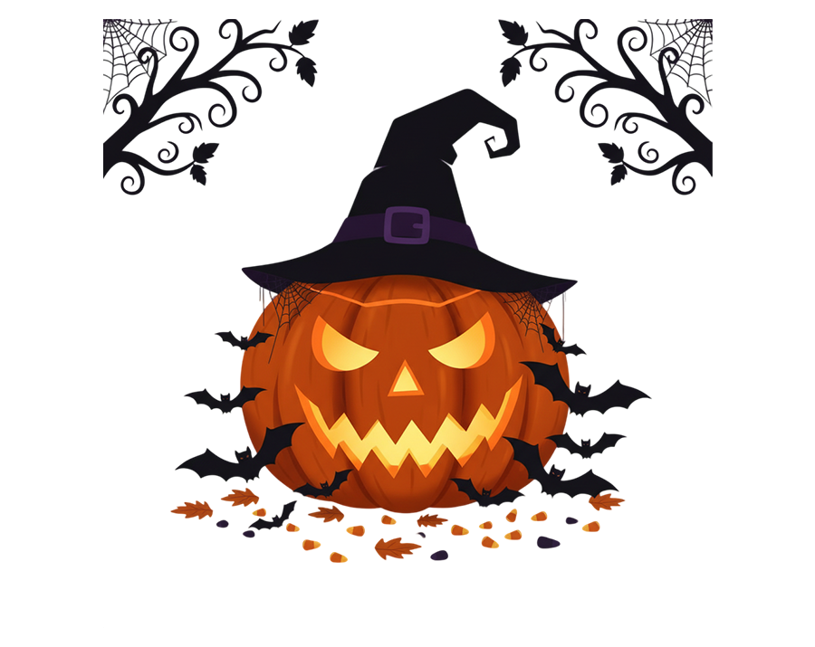 Spooky Jack-o'-Lantern with Witch Hat