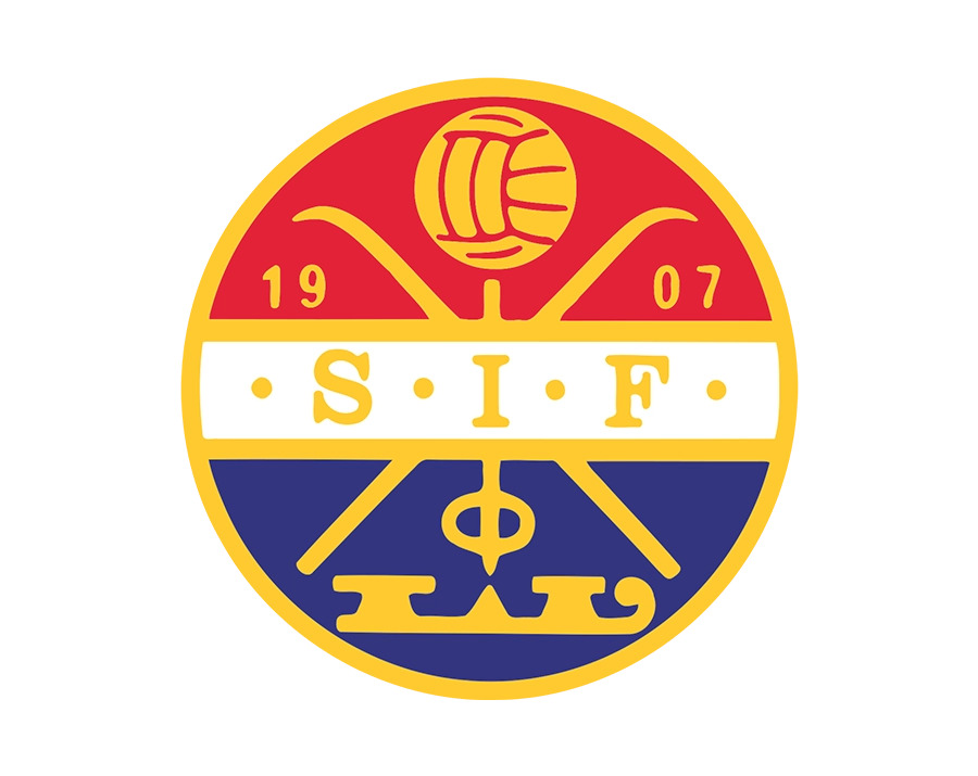 Strømsgodset Toppfotball logo, a circular emblem in red, white, blue, and yellow with a football, S.I.F. initials, crossed ski poles, and the year 1907.