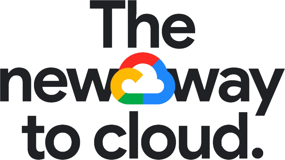 A slogan that reads "The new way to cloud." The word "cloud" is represented by the colorful Google Cloud logo.