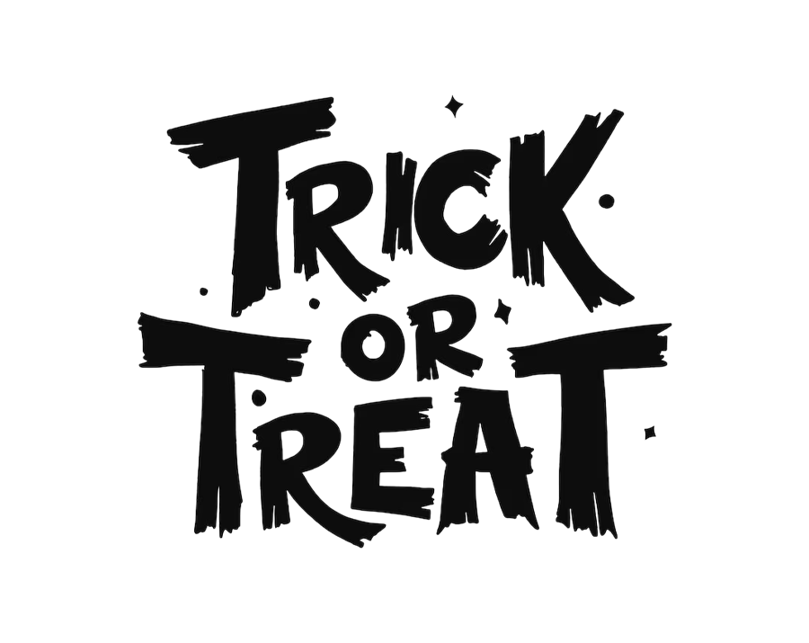 Transparent Halloween font PNG image of "TRICK OR TREAT" lettering silhouette in a distressed, brush stroke black style.
